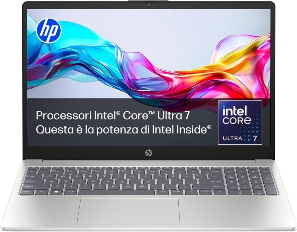 HP OmniBook 7 14-FR0000SL Laptop 14″ Display 2K OLED Antiriflesso, Intel Core Ultra 7 255U, 16GB di RAM, 1TB SSD, Grafiche Intel, Windows 11, Argento, QWERTY