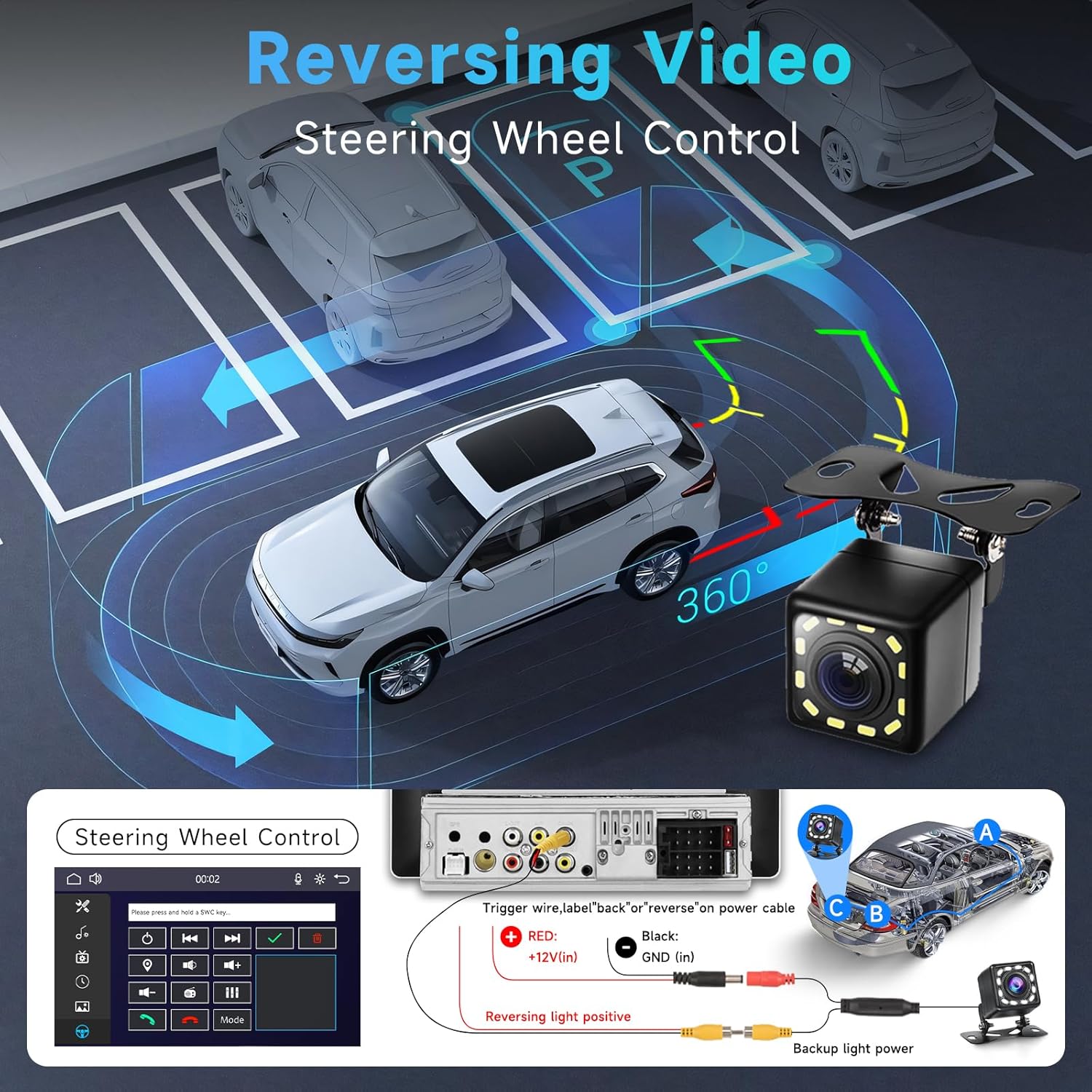 Il radiomobile include anche una telecamera per la retromarcia per maggiore sicurezza e praticità. Inserendo la retromarcia, il display del radiomobile mostra automaticamente l’immagine di retrovisione, facilitando la manovra. Le funzioni di riproduzione possono essere controllate direttamente dai comandi sul volante.