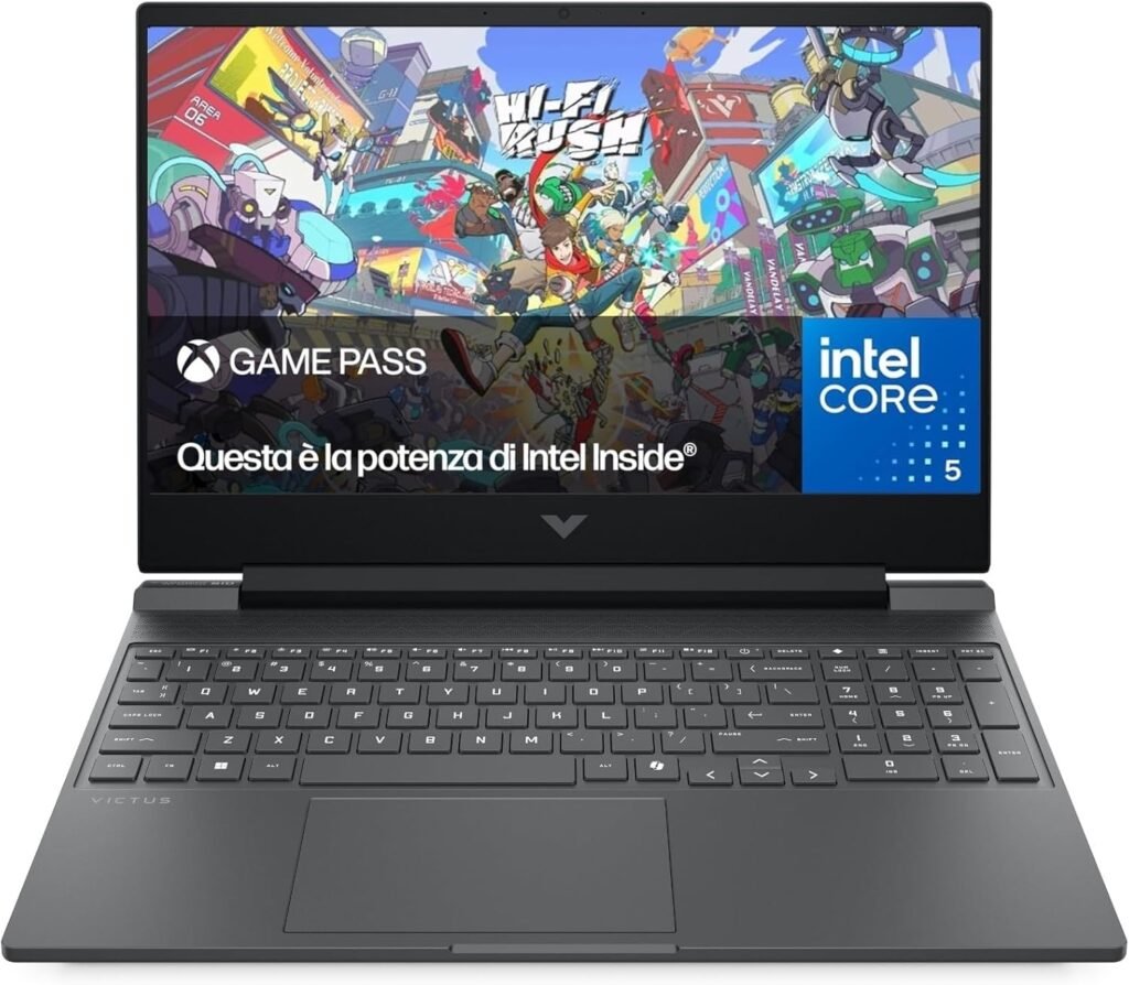 Notebook HP Victus 15-fa2003sl, Intel Core i5-210H, 16GB di RAM, SSD da 512GB, Display FHD IPS da 15,6” 144Hz, Wi-Fi, Nvidia RTX 5050 8GB, Windows 11, 3 Mesi di Game Pass Inclusi, Grigio.