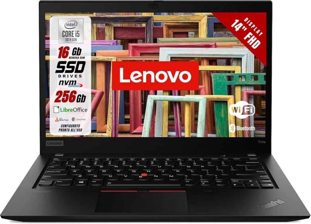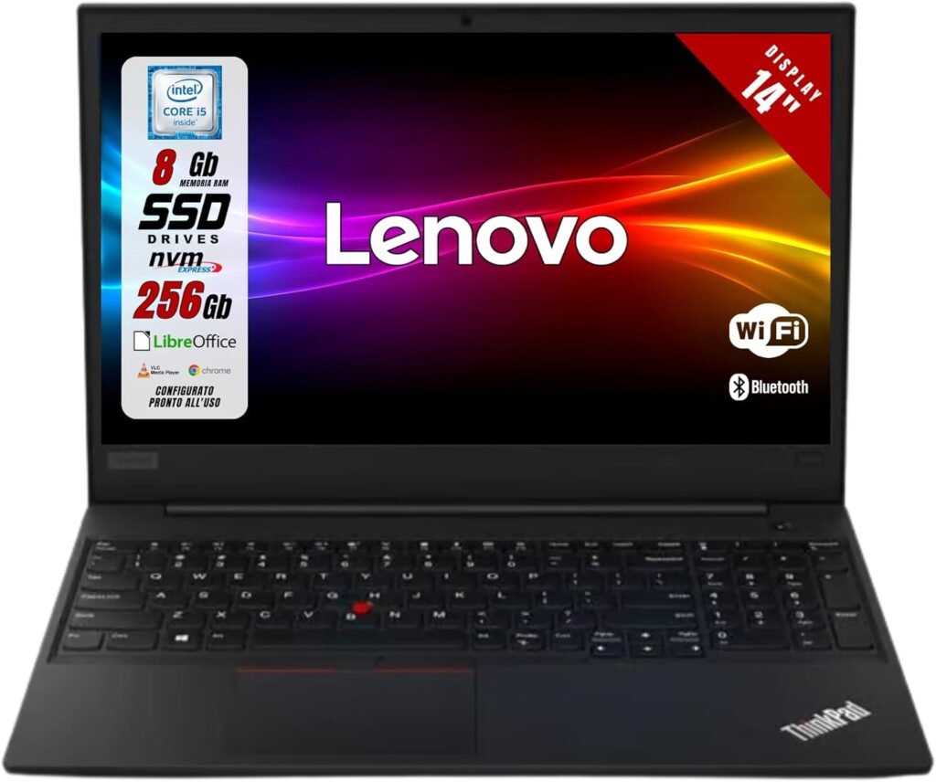 Laptop Lenovo ThinkPad Intel i5-8365u 4 Core 1.6Ghz – RAM 8GB SSD 256GB – Schermo 14.1″ FHD – Notebook Windows 11 Pronto all’uso con Libre Office (Ricondizionato)